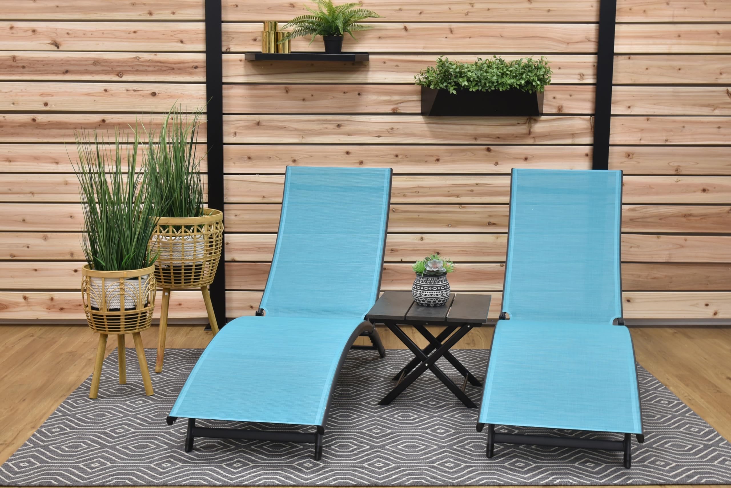 Vivere Adjustable and Stackable Coral Springs Lounger Set with Table, Made with Premium Durable Outdoor Fabric - 265 lb Capacity (Blue Hawaii)