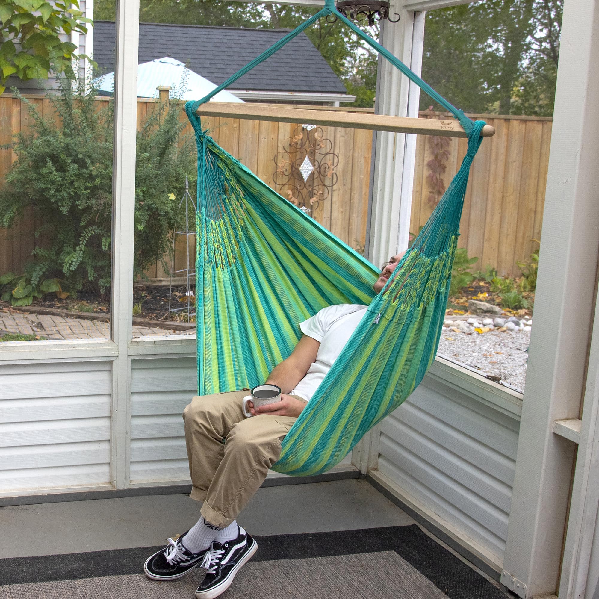 Vivere Cotton Double Wide Hammock Chair - Soft, Durable, Easy Setup with Wood Spreader Bar - 330 lb Capacity (Viridis)