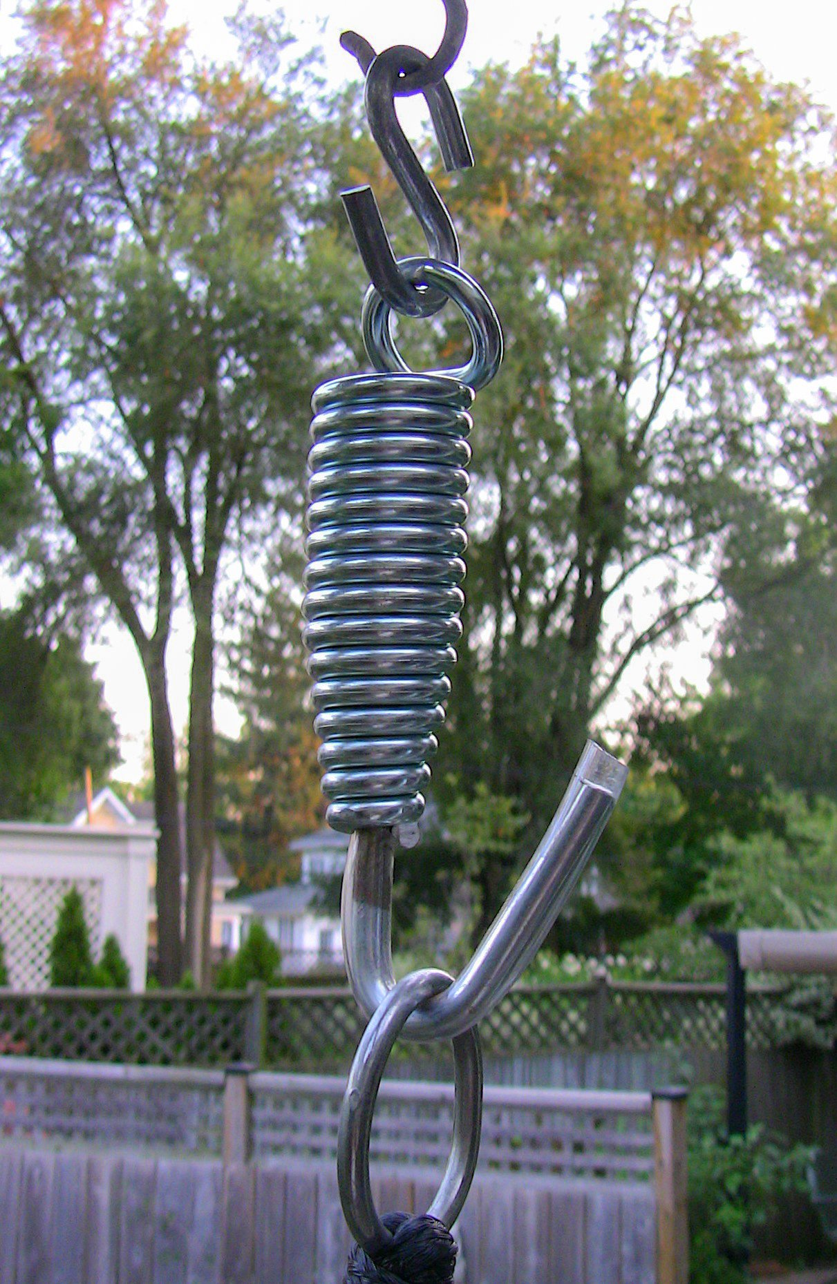 - Simply attach a SPRING to the hook and proceed to loop the hammock or hammock Chair onto the SPRING